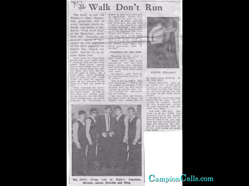 As happens good things do end and The Jets had run it's course. Malcolm needed to get his degree, Suresh had out grown the 'beat music' and wanted to branch out by himself playing protest and folk music which he liked,